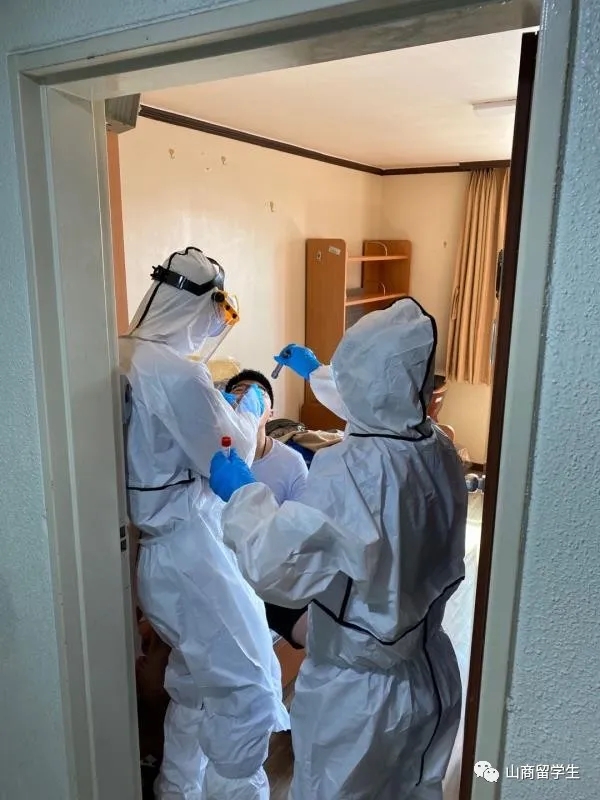 我们每天工作6小时,必须全程穿戴隔离服,每天回到寝室头发都被汗水浸透了。工作虽然辛苦,但在我们全体人员的努力下,庆南大学无一人感染。