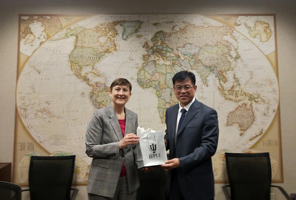 5月9日,代表团来到印第安纳大学-普渡大学印第安纳波利斯分校,与该校国际事务助理副校长Sara Allaei、信息与计算机学院院长Mathew Palakal、生物信息与健康信息系主任Huanmei Wu、国际事务办公室主任Ian Mclntosh等进行了交流。双方重点就计算机科学与技术、信息科学相关专业学生联合培养、学生交流项目和奖学金设置、教师互访等事项达成明确合作意向,并表示有意向继续推进双方深层次的合作。随后,杨同毅一行参观了学校全球领先的大数据与虚拟现实实验室,并与在该校就读的6名博士生进行了亲切交流,向他们介绍了我校概况及人才引进政策,希望他们能够来校访学与工作,得到了积极回应。