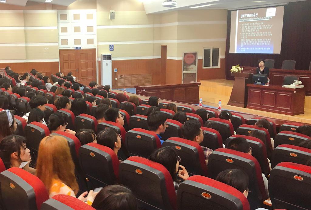 聘任仪式结束,杨普景作了《韩国文化与世界遗产》专题讲座,并现场回答了学生的提问,受到了学生们的广泛好评。