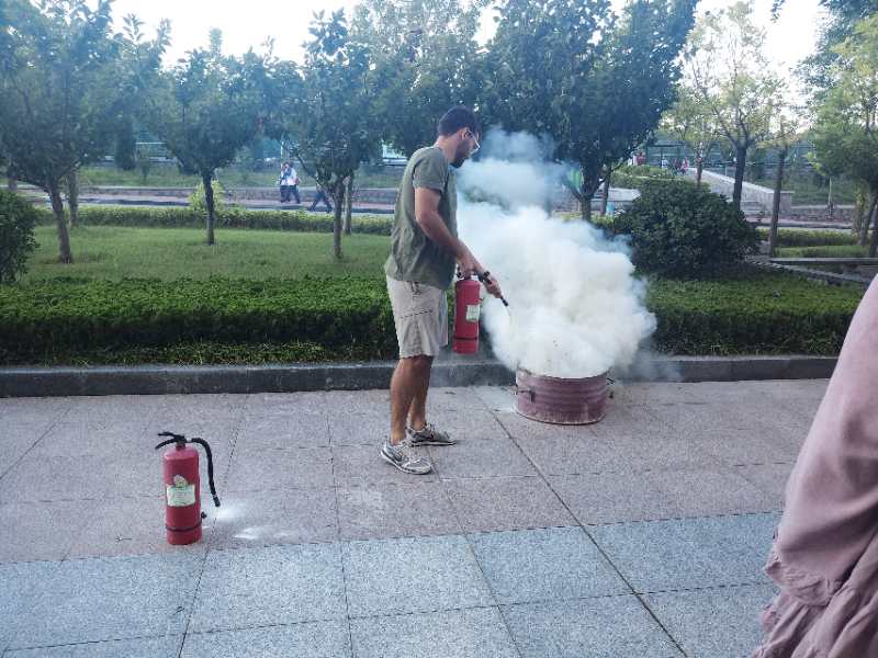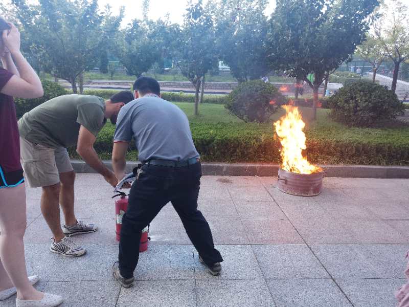 9月7日下午,保卫处老师来到西校区国际交流中心首先用PPT给外籍教师讲解和宣传消防知识,用发生在身边的一些案例提醒外籍教师要增强安全意识和防护意识,并且重点给外籍教师讲解遇到火灾等情况时如何处理;讲解完后保卫处老师组织外籍教师进行了消防疏散演习,带领大家在遇到火灾等紧急情况下如何选择合适的逃生路线;最好保卫处还组织外籍教师到室外学习如何使用灭火器,让外籍教师学习和操作如何使用灭火器。