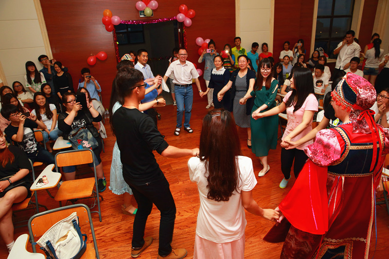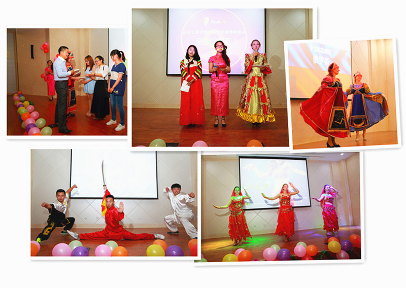 当夜幕降临在美丽的山商,联谊晚会在中俄韩学生们的共同期待中正式拉开帷幕,大家欣赏了各国师生带来的舞蹈、魔术、歌曲等精彩纷呈的文艺表演,并在极富趣味的猜词语、搭拱桥、摇微信、卡片抽奖等游戏互动中结识了各国新朋友,在国际文化交流环节中,中国学生呈现了威镇寰宇的传统中国武术、韩国学生用PPT演讲展示了韩国的古今风土人情,学生们还品尝到了俄罗斯教授精心准备的民族茶饮和甜点,联谊会在美味与欢乐中接近尾声,大家意犹未尽,依依不舍地合影留念,记录下了美好愉快的友谊之夜,第一届中俄韩联谊会伴着深厚无尽的友谊圆满闭幕。