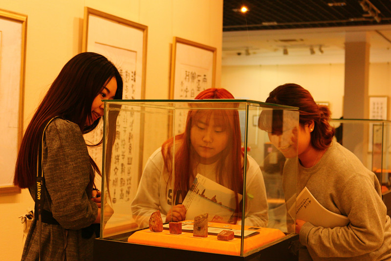 5月4日我院组织留学生代表在烟台画院参观了由烟台市文学艺术界联合会、烟台市书法家协会及烟台市美术家协会等联合举办的中国艺术家书法篆刻作品展。